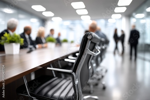 Fototapeta premium In this business office setting, casual wear is the attire of choice for the blurred figures, with a blurred bokeh background