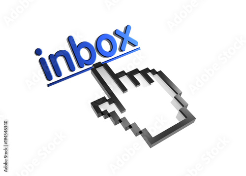 © Yuriy Pankratov, Fototapeta premium Inbox. Stylized hand pointer on link. 3D render. Isolated on white.