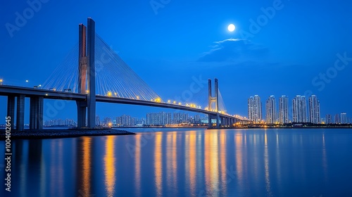 Obraz premium Incheon bridge connecting beautiful cityscape modern korea image