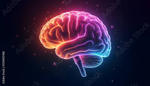 Obraz premium Inclusive Brain Map with Glowing Spectrum Lines
