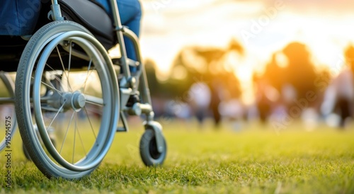 Fototapeta premium Inclusive Community Event at Sunset with Wheelchair Accessibility in a Park Setting