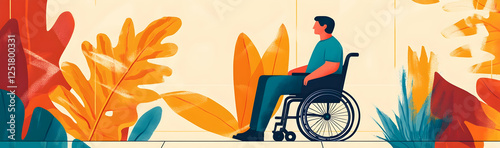 Naklejka premium Inclusive design featuring a man in a wheelchair, accessibility and awareness...