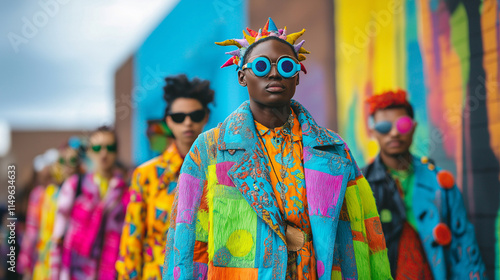 Obraz premium Inclusive Fashion – Models of All Sizes and Ethnicities Walking Down a Vibrant Urban Runway