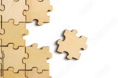 © Hasim Ramle, Obraz premium incomplete puzzle pieces, with seperated final pieces. Work and business concept with white background.