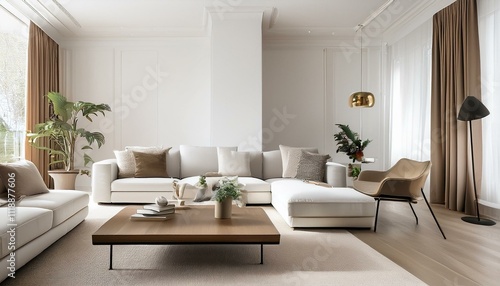 © Eboda, Fototapeta premium Incorporating Geometric Patterns in White and Neutral Living Room Design