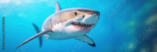 © Dibos, Naklejka premium Incredible Chum Line Attack by a Great White Shark During a Shark Cage Dive in Port.