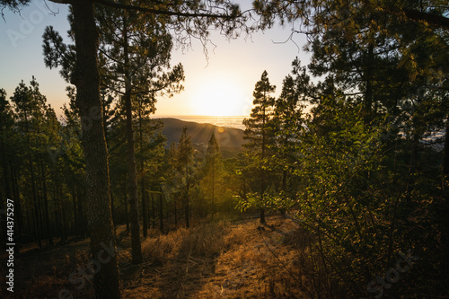 Obraz premium Incredible Sunset from within a pine forest