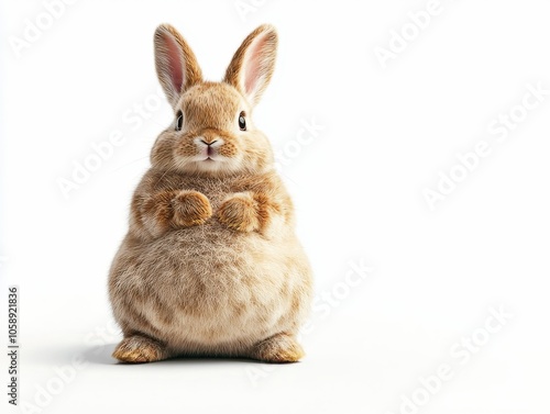 © NATTAKORN, Fototapeta premium Incredibly Plump and Fluffy Rabbit Posing Against a White Background
