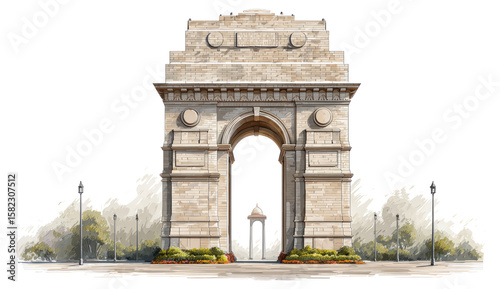 © Pangestu, Fototapeta premium India gate monument with the Indian flag