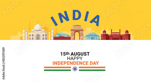 Naklejka premium India Independence Day Banner - 15th August Celebration with City Skyline