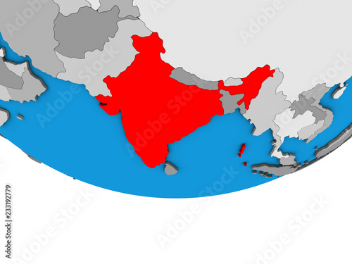 © harvepino, Naklejka premium India on simple political 3D globe.