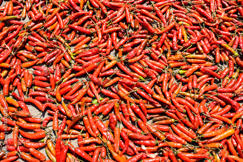 Fototapeta premium India Red chillies peppers kept for drying in the terrace.