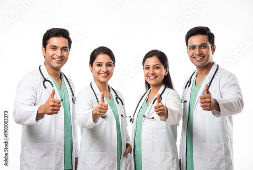 Fototapeta premium Indian Asian doctors team gives thumbs up in medical group