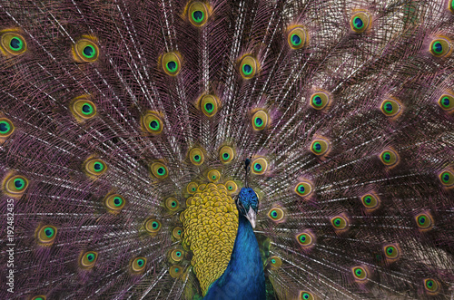 Obraz premium Indian blue peacock with spread feathers