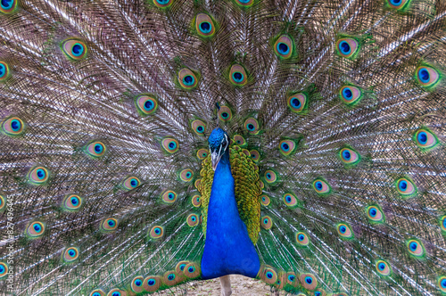 Naklejka premium Indian blue peafowl (Pavo cristatus), adult male with open tail