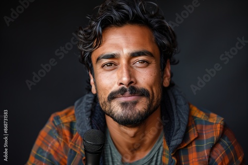 Fototapeta premium Indian Comedian Performing Stand-Up Comedy on Stage