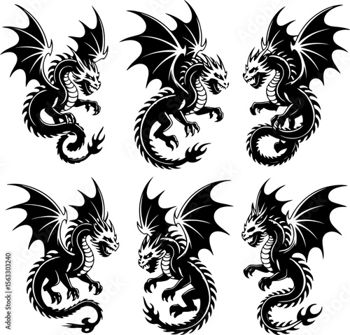© KING ART, Obraz premium Indian Dragon tattoos vector bundle