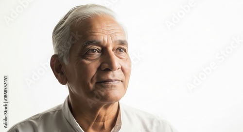 © Tarunkumar, Obraz premium Indian Elderly Man Listening Calmly with Wisdom