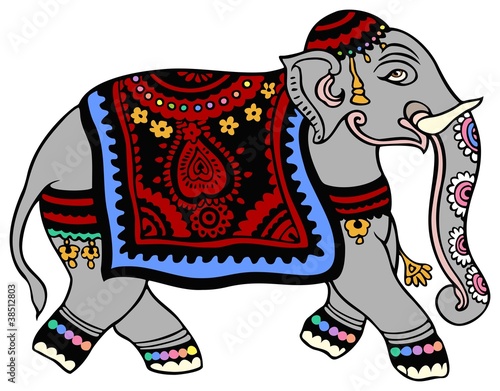 © Darla Hallmark, Fototapeta premium Indian Elephant, dressed for a party