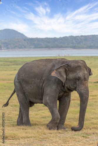 Obraz premium Indian Elephant on grassy plain in Minneriya National Park, Sri Lanka