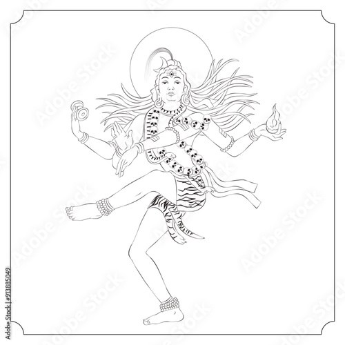 © Hatch, Obraz premium Indian Goddess Kali Dancing Isolated Outline Vector Illustration