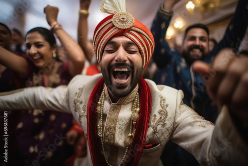 © Neha, Obraz premium Indian groom dancing and excited in the wedding ceremony