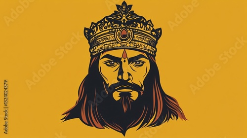 Fototapeta premium Indian king with a royal crown, icon style, plain background