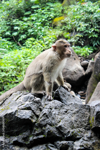 © pratik, Naklejka premium Indian monkey sitting on a rock