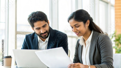 © Jo, Fototapeta premium Indian Office Workers Collaborating on Report