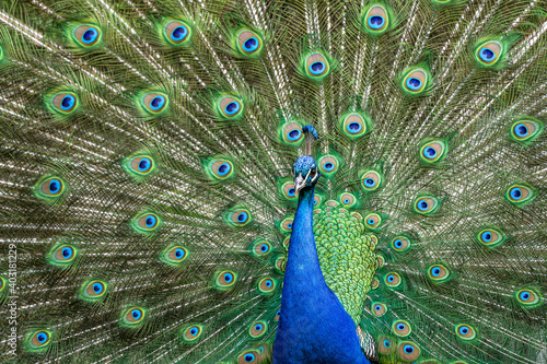 Naklejka premium Indian Peacock or Blue Peacock, Pavo cristatus