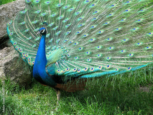 © Hipokamp, Obraz premium Indian peafowl blue (Pavo cristatus) portrait