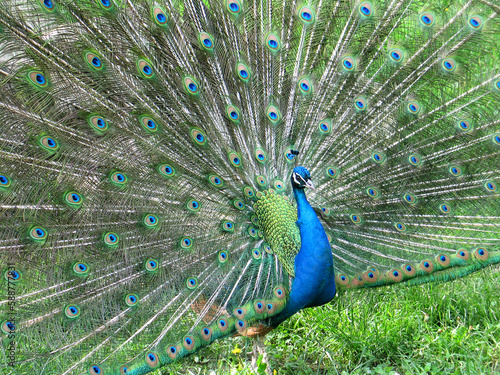 © Hipokamp, Naklejka premium Indian peafowl blue (Pavo cristatus) portrait