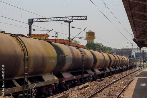 Naklejka premium Indian railway Freight Carrier train for carrying oil and Coal on 29th April 2024, Burdwan, India