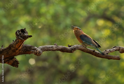 © Dr Ajay Kumar Singh, Naklejka premium Indian roller perched on a tree at Bhandavgarh tiger reserve, Madhya pradesh, India