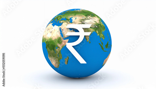 Fototapeta premium Indian rupee symbol; placed over and near globe; globe connecting dots; money...
