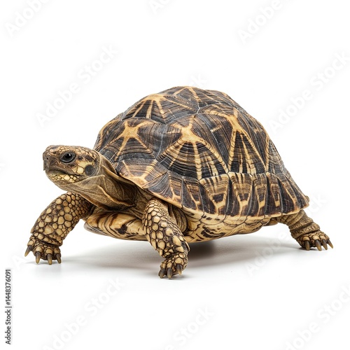 © Heri, Obraz premium Indian Star Tortoise Walking on White Background