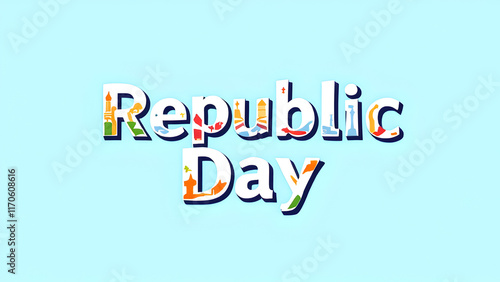 Obraz premium Indian tricolour flag font Republic Day illustration with 26 January text for...