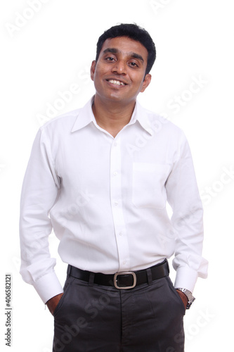© krishna, Fototapeta premium Indian young businessman isolated on white background.