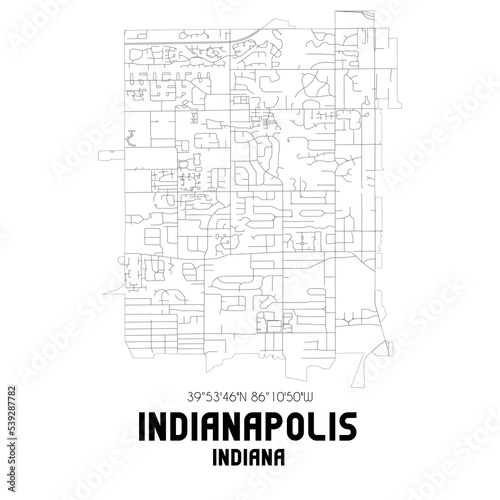 © Rezona, Obraz premium Indianapolis Indiana. US street map with black and white lines.