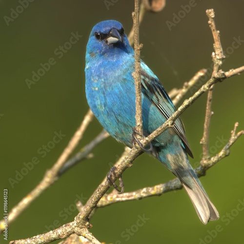 © Wirestock, Fototapeta premium Indigo Bunting perched on a tree branch observing its surroundings