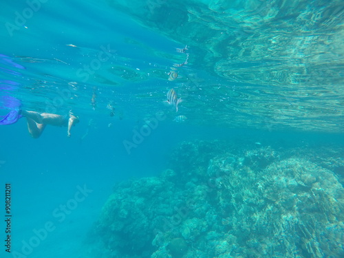 Fototapeta premium Indo-Pacific sergeant (Abudefduf vaigiensis) is a species of damselfish in the family Pomacentridae above coral reef in Red sea Egypt