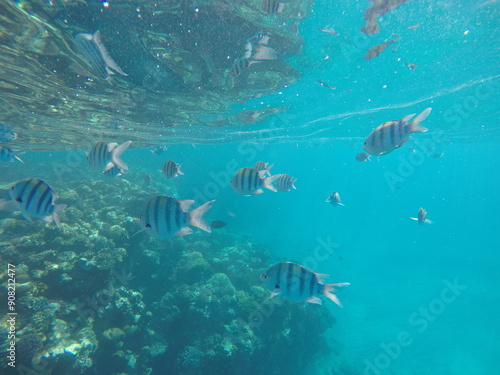 Fototapeta premium Indo-Pacific sergeant (Abudefduf vaigiensis) is a species of damselfish in the family Pomacentridae above coral reef in Red sea Egypt