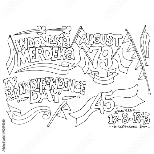Fototapeta premium Indonesia Independence Day, doodle vector