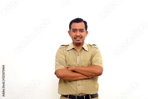 © ArvStd, Fototapeta premium Indonesian government employees standing while smiling and looking at the camera. Isolated on white