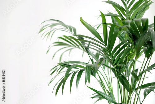 © Bundi, Obraz premium Indoor palm plant with green leaves, isolated on white. Chamaedorea is also known as the parlor palm plant.