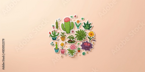 Obraz premium Indoor plant and flower stickers designed for decorating home environments,...