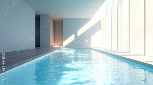 © Idaya, Fototapeta premium Indoor Pool with Sunlight Streaming Through Windows