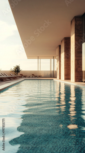 Fototapeta premium Indoor swimming pool design for modern villa, luxury pool, clean