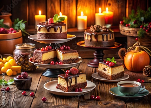 © Danicha, Fototapeta premium Indulge in the Richness of Delicious Cheesecake and Chocolate Brownies: A Candid Capture of Decadent Desserts Perfect for Any Sweet Tooth Gathering