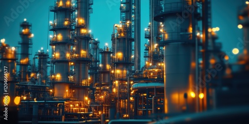 Fototapeta premium Industrial action illuminated refinery operations urban environment concept...